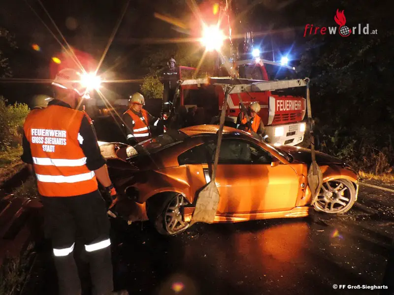 GROSS SIEGHARTS (NÖ): Am Sonntag, den 16. August 2015, wurde die Feuerwehr Groß-Siegharts-Stadt um 22.32 Uhr mit Pager und Alarm SMS Meldebild „T1 Pkw Bergung“ von Florian Niederösterreich nach Sieghartsles alarmiert.
