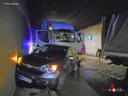 ST. MICHAEL (STMK): Am Morgen des 17. August 2015 wurden die Freiwilligen Feuerwehren St. Michael und St. Stefan ob Leoben um 05:24 Uhr zu einem Verkehrsunfall mit mehreren Fahrzeugen zum Nordportal des Gleinalmtunnels alarmiert.