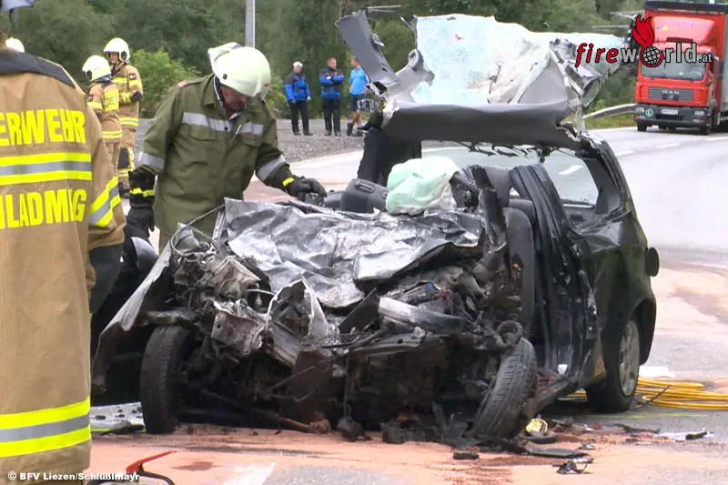 SCHLADMING (STMK): Schreckliche Bilder boten sich heute, 17. August 2015, gegen 14.00 Uhr den Einsatzkräften der Feuerwehren Schladming und Mandling-Pichl auf der Ennstalbundesstraße.