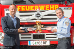 Nach Abschluss des Hilfseinsatzes darf sich das Kind den Bären als Freund und Helfer behalten!“ Branddirektor Johann Kirnich: „Ich freue mich über das Zustandekommen dieser Aktion und bedanke mich bei den Kollegen Hauptbrandmeister Rupert Schrank und Offiziersanwärter Gernot Eisenberger für die Mitarbeit. Diese Maßnahme ist zwar nur eine kleine, aber eine umso wirkungsvollere bei traumatisierten und verängstigten Kindern!“