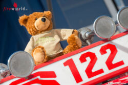 GRAZ (STMK): Ab sofort fährt „Flo der Traumabär“ als kleiner Feuerwehrmann in Kommandofahrzeugen und Löschfahrzeugen der Berufsfeuerwehr Graz mit.