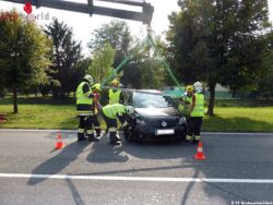 GROSSWEIKERSDORF (NÖ): Am 21. August 2015 um 16.22 Uhr wurde die Freiwillige Feuerwehr Großweikersdorf von Florian Niederösterreich mittels Personenrufempfänger und Blaulicht-SMS mit dem Alarmtext „Fahrzeugbergung zwischen den Kreuzungen Jubiläumstraße und Bahnstraße“ alarmiert.
