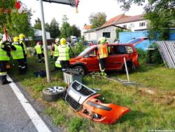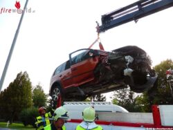 Nach der Unfallaufnahme durch durch die Polizei, wurde ein VW mittels Kranfahrzeug und Abschleppachse geborgen und gesichert abgestellt. Ein VW Cross Touran wurde aufgrund der enormen Beschädigungen auf der Ladefläche des Wechselladefahrzeuges von der Unfallstelle entfernt. Abschließend wurden ausgelaufene Betriebsmittel gebunden, und die Fahrbahn gereinigt.
