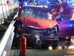 Parallel wurden die verletzten Personen durch das Rote Kreuz und dem Notarzt betreut, wobei eine verletzte Person im Fahrzeug versorgt wurde. Um diese Person schonend aus dem Pkw zu retten, wurde nach der Erstversorgung mittels hydraulischer Rettungsgeräte das Dach entfernt.