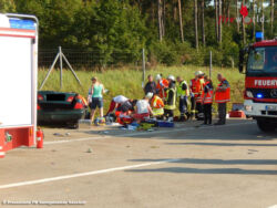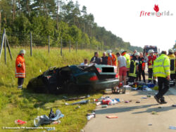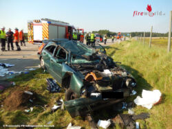 In der Folge überschlug sich der Wagen mehrfach, wobei die beiden Insassen zum Teil schwer verletzt wurden. Zwei zufällig an der Unfallstelle vorbei kommende Ärzte, darunter auch ein leitender Notarzt aus Bayern, sowie eine Krankenschwester und weitere Ersthelfer zogen den Fahrer und den Beifahrer aus dem völlig zerstörten Pkw. Kräfte der aus Egestorf und Sahrendorf-Schätzendorf angerückten Feuerwehren halfen bei der Versorgung der beiden Verletzten und sicherten die Unfallstelle