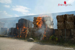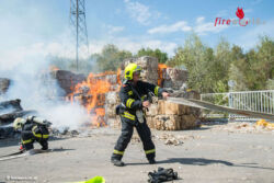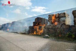 ENNS (OÖ): Aus bislang ungeklärter Ursache sind am 24. August 2015 etwa hundert Meter gepresste Papier- und Kartonballen in Brand geraten.