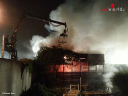 Die Löscharbeiten gestalteten sich aber aufgrund der Holzbauweise schwierig, da sich das Feuer in den Zwischendecken und Wänden ausbreitete. Schlussendlich musste das Nebengebäude mit einem Kran abgetragen werden, um auch an die letzten Glutnester zu gelangen. Wegen der starken Rauchentwicklung mussten die Hotelgäste und die umliegenden Anrainer die Fenster geschlossen halten. Die Evakuierung des Hotels war aber nicht mehr erforderlich. Die Feuerwehrleute konnten die Löscharbeiten großteils nur unter schwerem Atemschutz durchführen.