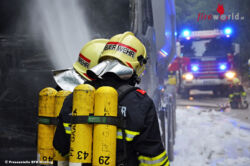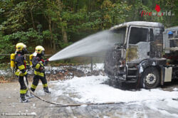 GAADEN (NÖ): Am 24. August 2015 fuhr ein Lkw-Sattelzug in Gaaden die Zufahrtsstraße in Richtung Steinbruch. Aus bisher ungeklärter Ursache begann plötzlich die Fahrerkabine zu brennen. In kürzester Zeit stand diese in Vollbrand.