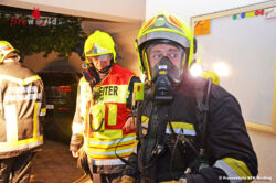 Anschließend verständigte sie über Handy den Feuerwehr Notruf. Die Feuerwehr Guntramsdorf rückte mit sechs Einsatzfahrzeugen und 38 Feuerwehrmitgliedern an. Nach Erkundung des Einsatzleiters nahm der erste Atemschutztrupp die Brandbekämpfung mit einem Bioversal-Feuerlöscher vor. Parallel dazu kamen ein Hochleistungslüfter und ein Be- und Entlüftungsgerät zum Einsatz.