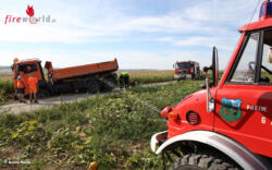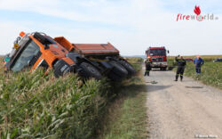 Auf einem Feldweg zwischen Kotzendorf und Freischling kippte aus ungeklärter Ursache ein LKW der Straßenmeisterei auf die Beifahrerseite. Nach dem Sichern des LKWs wurde dieser mit zwei Seilwinden aufgerichtet und wieder auf die Straße gezogen. Nach der Bergung wurde der LKW auf einen Tieflader verladen und abtransportiert. Verletzt wurde zum Glück niemand.