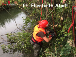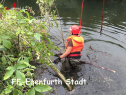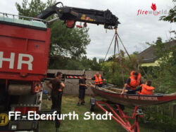 EBENFURTH (NÖ): Am Dienstag, den 25. August 2015 um 15:30 Uhr, wurde die Feuerwehr Ebenfurth Stadt zur Unterstützung des Mühlenbetreibers bei Sicherungsarbeiten am Fischaufer gerufen.