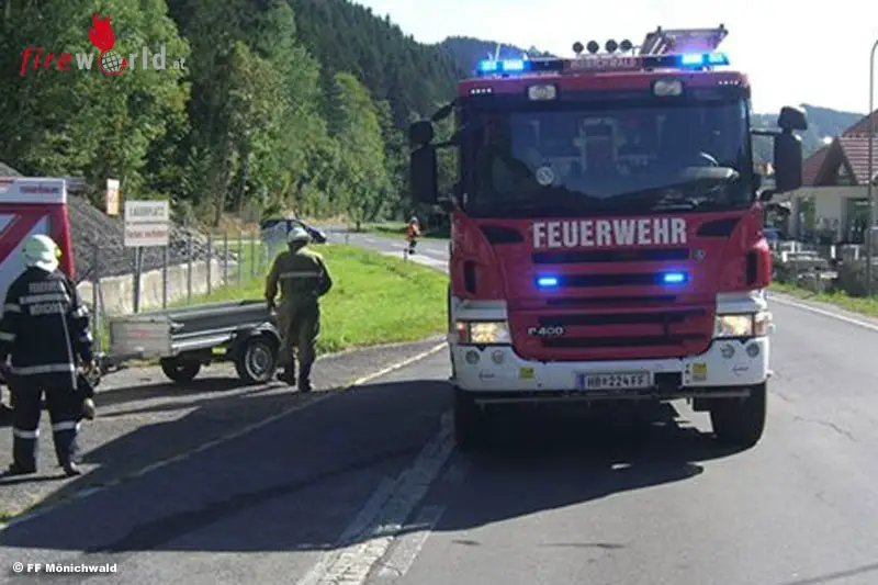 MÖNICHWALD (STMK): Am Donnerstag, den 27. August 2015 um 09.34 Uhr, wurde die Freiwillige Feuerwehr Mönichwald per Sirene alarmiert. Grund war ein Auffahrunfall entlang der L416 auf Höhe des Lagerhaus Mönichwald.