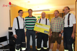 Finanzreferent LM Walter Schwertberger konnte aus den Händen von Wolfgang und Manfred Binder einen symbolischen Scheck über EUR 1.500,- für das neue Rüsthaus in Empfang nehmen. Das Kommando der FF Gröbming möchte sich auf diesem Wege noch einmal sehr herzlich bedanken, auch für die seitens der ortsansässigen Firma bestens ausgeführten Verputzarbeiten beim neuen Rüsthaus.