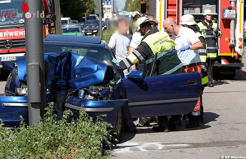 MÜNCHEN (D): Bei einem Verkehrsunfall auf der Münchner Landshuter Allee ist am Nachmittag des 30. August 2015 ein 75-jähriger Fahrzeuglenker mit seinem Pkw gegen einen Lichtmast im Mittelstreifen geprallt. Er wurde bei dem Aufprall schwer verletzt.