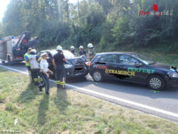 Mittels Besen wurden die Fahrzeugteile zusammengekehrt bzw. unter Zuhilfenahme eine Hochdruckstrahlrohres wurde die Unfallstelle gereinigt. Das Fahrschulauto konnte seine Fahrt fortsetzen. Das 2 Unfallfahrzeug musste von einem Abschleppunternehmen abtransportiert werden. Einsatzende: 16:30 Uhr Insgesamt standen 19 Mann freiwillig mit drei Einsatzfahrzeugen im Einsatz. Während der Dauer des Einsatzes war die Unfallstelle nur 1-seitg befahrbar.