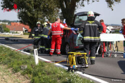 Die Feuerwehr befreite, in Absprache mit der Notärztin, die Lenkerin unter Zuhilfenahme des hydraulischen Rettungsgeräts. Für eine schonende Rettung musste die Autotüre entfernt werden.