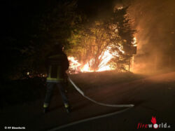 EBENFURTH (NÖ): Am Dienstag den 1. September 2015, wurde die Feuerwehr der Stadt Ebenfurth um 23:50 Uhr mittels Sirene zu einem Kleinbrand eines Baumes gerufen. Vermutlich durch Selbstentzündung eines Komposthaufens waren mehrere Büsche und Bäume eines Gartens in Brand geraten. Der Fahrzeugkommandant des ersteintreffenden Tank 1 Ebenfurth entschied noch bei der Anfahrt, die FF Haschendorf als Einsatzreserve nachzualarmieren.