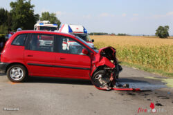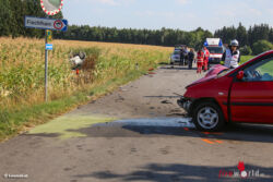 Ein Unfallfahrzeug in ein angrenzendes Maisfeld geschleudert. Laut ersten Informationen wurden drei Personen verletzt, davon eine Person mittelschwer. Drei Feuerwehren standen im Einsatz, führten die Aufräumarbeiten durch und richteten eine örtliche Umleitung ein. Die Eberstalzeller Straße war im Bereich der Unfallstelle rund eineinhalb Stunden für den Verkehr gesperrt.