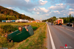 STEYREGG (OÖ): Am 01.09.2015 wurde die Feuerwehr Steyregg zu einem Verkehrsunfall Höhe der Avia Tankstelle an der B3 gerufen. Am Einsatzort stellte sich bei der Lageerkundung durch Einsatzleiter BR Breuer Christian heraus, dass ein Kleintransporter von der Fahrbahn abgekommen und am Dach im Straßengraben gelandet war.