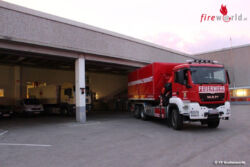 Mit der Unterstützung zahlreicher – sehr motivierter – Polizeischüler wurde das WLF abgeladen und die angehenden Polizisten begannen sogleich noch in der Nacht mit dem Aufbau der Behelfsquartiere. Gegen 23:30 Uhr waren die drei Grafenwörther dann wieder mit dem Wechselladefahrzeug zurück in Grafenwörth.