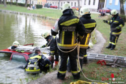 Nö: Auto in Teich gestürzt – Unangekündigte Einsatzübung der Feuerwehr Laa an der Thaya