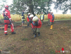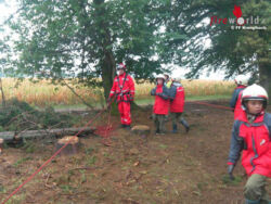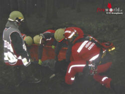 In der Nacht wurde dann noch bei einem verunfallten Fahrzeug die Bergung des Lenkers vorgenommen um dann schliesslich doch noch zur wohlverdienten Nachruhe zu kommen. Am Samstag Vormittag nach dem Frühstück im Feuerwehrhaus lautete das Übungsszenario „Personenrettung im ungwegsamen Gelände“. Bildung einer Suchkette, Auffinden der verletzten Person, Orientierung und Einweisung von Stützpunktkräften in unbekanntes Gebiet waren hier die primären Ziele die vom Lotsenkommandant angedacht wurden und bei der auch die Höhenretter der Feuerwehr Eberstalzell einen wesentlichen Teil dazu beitrugen unsere Übungspuppe „Herbert“ wieder sicher aus dem Waldgelände heraus zu bringen.
