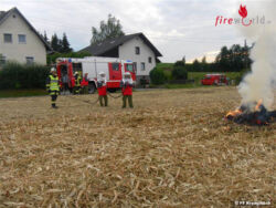 Nach Eintreffen im Feuerwehrhaus und „Bettenbau“ wurden die Burschen zu einem Strohballenbrand auf ein Feld „alarmiert“. Unter Aufsicht und Hilfestellung der Betreuer und Feuerwehrkameraden mussten die Gerätschaften bedient und der Brand gelöscht werden.