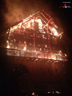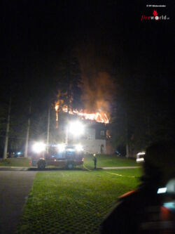 HINTERSTODER (OÖ): Am 07.09.2015 wurde die Feuerwehr Hinterstoder um 00.54 Uhr mittels Pager und Sirene zu einem Brand eines Wohnhauses alarmiert. Beim Brandobjekt handelt es sich um das ehemalige Landeserholungsheim Peham-Villa. Bereits bei der Anfahrt wurde durch Einsatzleiter HBI Helmut Kniewasser Alarmstufe 3 ausgelöst.