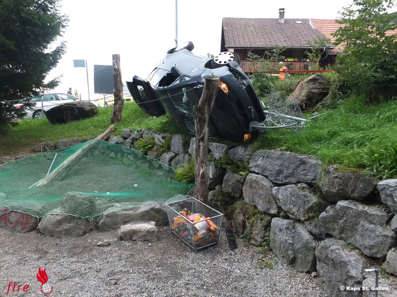 Schweiz: Pkw stürzt auf Spielplatz, Metallpfosten bohrt sich durch Frontscheibe