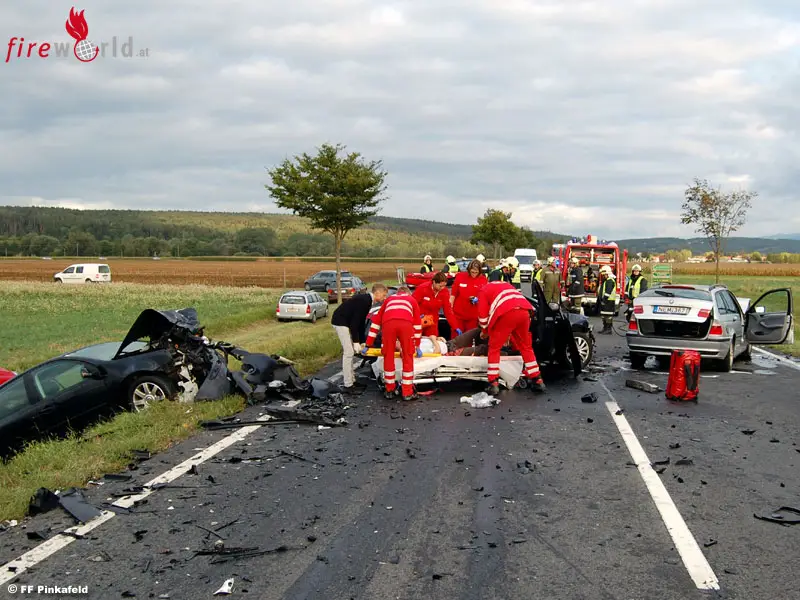 Bei dem Crash wurden zwei Personen leicht und eine Person schwer verletzt. Sie wurden vom Roten Kreuz Oberwart versorgt und ins Krankenhaus eingeliefert. Entgegen der ersten Alarmmeldung war aber keine Person in den Unfallfahrzeugen eingeklemmt. Für die Bergung der Unfallfahrzeuge wurde die Feuerwehr Pinkafeld von der Feuerwehr Riedlingsdorf nachalarmiert.