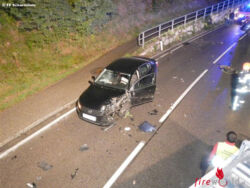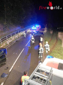 SCHARNSTEIN (OÖ): Am Montagabend, 07.09.2015, wurde die Feuerwehr Scharnstein um 22.33 Uhr von der Landeswarnzentrale zu einem schweren Verkehrsunfall auf die L549 Almseelandesstraße im Bereich Kothmühle alarmiert. Aus unbekannter Ursache stieß ein Richtung Scharnstein fahrender Pkw-Lenker mit einem ihm entgegenkommenden Fahrzeuglenker frontal zusammen. Durch die Wucht des Aufpralles wurden die Wrackteile auf zirka 70 Meter verteilt.