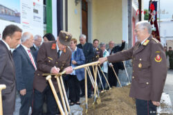 Bereits bei der von Pfarrassistent Diakon Bruno Fröhlich gestalteten Feldmesse im Festzelt konnte Kommandant Konrad Remplbauer viele Hagenbergerinnen und Hagenberger, Abordnungen von fünf Nachbarfeuerwehren und der Partnerfeuerwehr Putzbrunn sowie eine Reihe von Ehrengästen, darunter Landeshauptmann Dr. Josef Pühringer, die Landtagsabgeordneten Maria Jachs und Hans Affenzeller, Bürgermeisterin Mag. Kathrin Kühtreiber-Leitner, Bezirkshauptmann Mag. Alois Hochedlinger, Bezirks-Feuerwehrkommandant OBR Franz Seitz und ABI Johann Pötscher willkommen heißen. Nach einem kurzen Rückblick auf die 140-jährige Erfolgsgeschichte der FF Hagenberg und den Ansprachen der Ehrengäste konnte der Spatenstich am Vorplatz des derzeitigen Feuerwehrhauses durchgeführt werden. Zahlreiche Festbesucher ließen sich diesen historischen Moment nicht entgehen.
