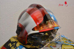 Die Kameraden der Partnerfeuerwehr aus Putzbrunn überreichten Kommandant Konrad Remplbauer ein ganz besonderes Gastgeschenk: ein mittels Airbrush gestalteter Feuerwehrhelm – dieser trägt auf der einen Seite die blaukarierte bayrische Flagge mit dem Wappen der Feuerwehr Putzbrunn und auf der anderen Seite die österreichische Flagge mit dem Wappen der Feuerwehr Hagenberg. „Der Helm wird einen ganz besonderen Platz in unserem neuen Feuerwehrhaus erhalten“, sagte Kommandant Konrad Remplbauer.