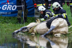 Den Abschluss dieser wunderbaren wie erkenntnisreichen Ausbildungseinheit bildete eine Übung zum Szenario „Pferd liegt im Teich". Dazu konnten auch Bereichsfeuerwehrkommandant LFR Engelbert Huber, dessen Stellvertreter BR Christian Leitgeb, ABI Alfred Jauk und EABI Josef Porta begrüßt werden, die sich vom Erlernten der Teilnehmer gleich überzeugen konnten.