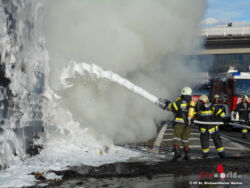 Als der Fahrer des Zugfahrzeugs das Feuer bemerkte, blieb er auf der Abfahrt St. Michael stehen und kuppelte das Zugfahrzeug ab. Beim Eintreffen der Feuerwehr stand der Anhänger bereits in Vollbrand. Mittels Schaummittel wurde das Feuer, unter Einsatz schweren Atemschutzes, unter Kontrolle gebracht. Durch die starke Rauchentwicklung war die Sicht auf der Autobahn teilweise stark eingeschränkt. Der Verkehr wird derzeit über St. Michael umgeleitet.