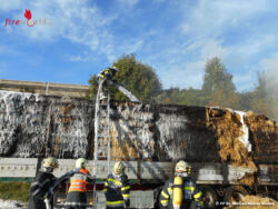 ST. MICHAEL (STMK): Die Freiwillige Feuerwehr St. Michael wurde am 8. September 2015 zu einem Fahrzeugbrand auf die A9 bei der Abfahrt St. Michael alarmiert. Ein mit Stroh beladener Lkw-Anhänger hatte während der Fahrt Feuer gefangen.