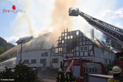 LENNESTADT (DEUTSCHLAND): Gegen 9:30 Uhr des 9. September 2015 wurde die Feuerwehr Lennestadt zu einem gemeldeten Dachstuhlbrand nach Lennestadt-Burbecke alarmiert. Da bei Eintreffen der ersten Einsatzkräfte das Fachwerkgebäude bereits in Vollbrand stand, wurde aufgrund der Lage das Alarmstichwort auf „Feuer 3“ erhöht.