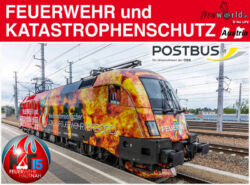 Die eigens anlässlich dieser Veranstaltung kreierte Feuerwehrlok wird durch die Österreichischen Bundesbahnen am Hauptbahnhof Tulln zur Besichtigung hinterstellt.