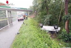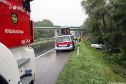Auf der Richtungsfahrbahn St. Pölten der B37a war auf Höhe Hollenburg bei strömendem Regen ein Pkw von der Straße abgekommen, hatte sich überschlagen und kam am Dach nach der Abfahrt Hollenburg zu liegen. Der Lenker blieb bei dem Unfall unverletzt.