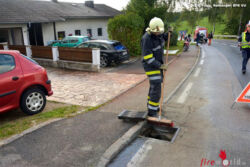 Gegen 16:00 Uhr lenkte ein 31-jähriger Bad Leonfeldner seinen Pkw rückwerts aus einer Hauseinfahrt und übersah dabei einen Sattelzug, gelenkt von einem 51-jährigen Slowaken. Dieser konnte nicht mehr ausweichen und stieß mit dem 31-Jährigen zusammen. Bei dem Zusammenstoß wurde vom Lkw der Dieseltank aufgerissen. Etwas 200 Liter des Treibstoffes flossen unglücklicherweise über einen Einlaufschacht ab.
