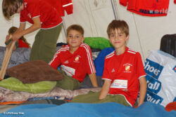 Wenn sich knapp 240 Feuerwehrnachwuchskräfte mitsamt Betreuerstab aus dem ganzen Bereichsfeuerwehrverband Feldbach zu einem gemeinsamen Zeltlager auf Reisen begeben, dann muss wirklich alles gut organisiert sein. Dafür zeichneten das Organisations-Team der Freiwilligen Feuerwehr Petersdorf II unter Kommandant Gottfried Hofer jun. sowie Bereichsjugendbeauftragter ABI d.F. Johannes Matzhold verantwortlich, die in monatelangen Vorbereitungsarbeiten für tolle Rahmenbedingungen in der freien Natur sorgten. Ein bisher reibungsloser Ablauf bestätigt den Veranstaltern den Erfolg dieses Lagers. Das Umfeld um die Festhalle und um das örtliche Feuerwehrhaus bietet optimale Bedingungen für den Lagerplatz. Sanitäreinrichtungen und Verpflegungsbereiche befinden sich in unmittelbarer Nähe zum Lager. Frühstück und Mittagessen gibt es in der Festhalle, wo auch frisch gekocht wird.