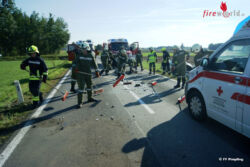 Oö: Eingeklemmte Person nach Pkw-Frontalzusammenstoß in Andorf
