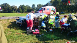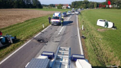 ANDORF (OÖ): Eine Kollision zweier Pkw auf der Andorfer Landesstraße 514 im Bereich Winteraigen forderte am 12.09.2015 eine schwerverletzte Person in der Gemeinde Andorf, Bezirk Schärding. Die Fahrzeuge stießen frontal zusammen und wurden anschließend über die Böschung in die angrenzende Wiese geschleudert