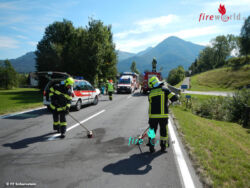 SCHARNSTEIN (OÖ): Am Sonntagmittag, 13. September 2015, wurde die Feuerwehr Scharnstein um 12.15 Uhr von der Landeswarnzentrale zu Verkehrsunfall Aufräumungsarbeiten auf die B120, Kreuzung Gasthaus Thann alarmiert.