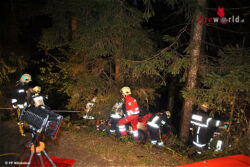 Übungsannahme war ein Verkehrsunfall bei dem zwei Autos bei Abhang abzustürzen drohten. Nach der Sicherung der Autos begannen die Feuerwehren mit der Befreiung der verletzten Insassen. Da auch mehrere Personen aus dem Autowrack geschleudert wurden, suchte eine Mannschaft den Wald ab und bargen diese aus dem Gefahrenbereich.