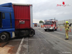 Beim Eintreffen der Feuerwehr waren bereits die Autobahnpolizei sowie die ASFINAG vor Ort und die Unfallstelle abgesichert. Das LKW-Führerhaus war ca. um 45 Grad abgewinkelt zum Anhänger am rechten Bankett zum Stehen gekommen. Durch den Unfall war der Treibstofftank beschädigt worden, sodass bereits mehrere hundert Liter Diesel ins Erdreich ausgeflossen waren.