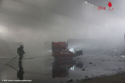 Die Freiwillige Feuerwehr Lacken wurde auf Grund eines Brandmelderalarms zuerst zum Einsatzort alarmiert. Rasch war klar, dass schnell gehandelt werden musste, um die Ausbreitung der Flammen zu verhindern. Nach einem Sonderalarmplan wurden die weitere Freiwilligen Feuerwehren alarmiert. Elf Freiwillige Feuerwehren bekämpften das Feuer. Atemschutztrupps gingen in der stark verrauchten Hallen bis zum Brandherd vor und führten die Löscharbeiten durch.