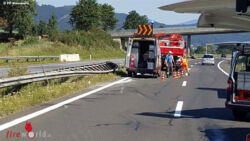 Zum Glück kam zu diesem Zeitpunkt niemand entgegen. Die beiden Fahrzeuginsassen wurden vom Notarzt, der Rettung und den Feuerwehrsanitätern erstversorgt und schließlich mit Verletzungen unbestimmten Grades in das UKH Kalwang gebracht. Das Unfallfahrzeug wurde von einem Abschleppunternehmen abtransportiert. Nachdem die ausgetretenen Betriebsmittel gebunden wurden, konnte die alarmierte Freiw. Feuerwehr Kammern wieder einrücken und die Einsatzbereitschaft herstellen. Die A9 war in Richtung Süden für rund 90 Min. nur einspurig befahrbar.
