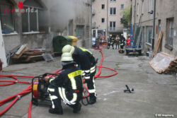 Beim Eintreffen der Berufsfeuerwehr in der Bäckergasse, drang dichter Brandrauch aus dem Gebäude. Vier Atemschutzgeräteträger lokalisierten mit Hilfe der Wärmebildkamera den Brandort. In den Späne – Absaugungsrohren brannten Holzspäne. Die Holzspäne wurden mit einem C – Druckluftschaumrohr abgelöscht. Die Späne Absaugung wurde teilweise demontiert. Personen wurde nicht verletzt. Für ca. eine Stunde war die Bäckergasse komplett gesperrt. Es kam zu Verkehrsbeeinträchtigungen.