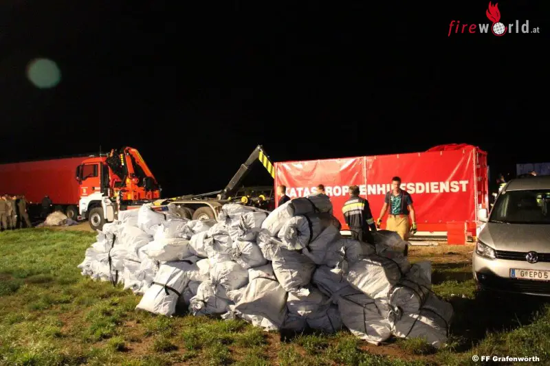 GRAFENWÖRTH (NÖ): Wie bereits am 04.09.2015 wurde die Feuerwehr Grafenwörth mit dem Wechselladefahrzeug am Abend des 14.09.2015 erneut zu einem Hilfstransport im Rahmen der Flüchtlingshilfe des Roten Kreuzes angefordert. Ziel diesmal: Nickelsdorf im Burgenland.